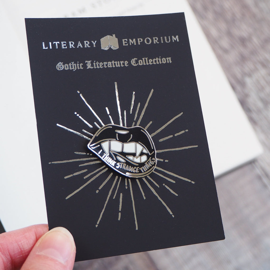 Make your pin game strong with our Dracula inspired enamel pin badge. The perfect literature themed gift for a book lover.